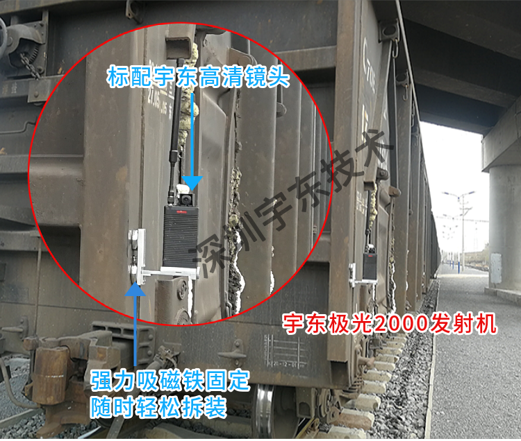 磁鐵架固定機器底部1/4螺紋內,通過磁鐵吸在 列車掛鉤位置 |