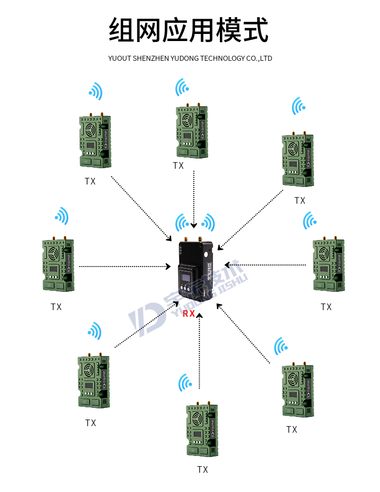 無線參數: 組網方式:點對點、點對多點 (MAX 16 點)、網狀組網、中繼組網 |