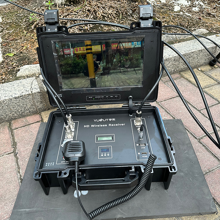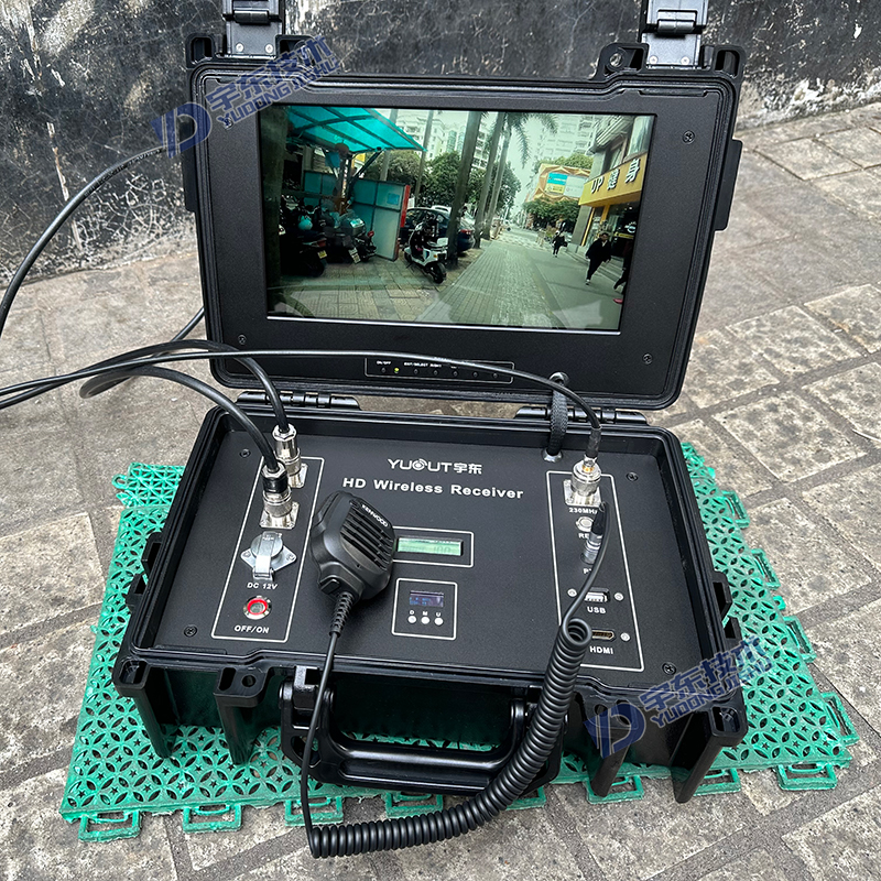 11、接收機為便攜式手提箱類型,支持插USB錄像,自帶顯示屏,可接收并顯示發射機視頻